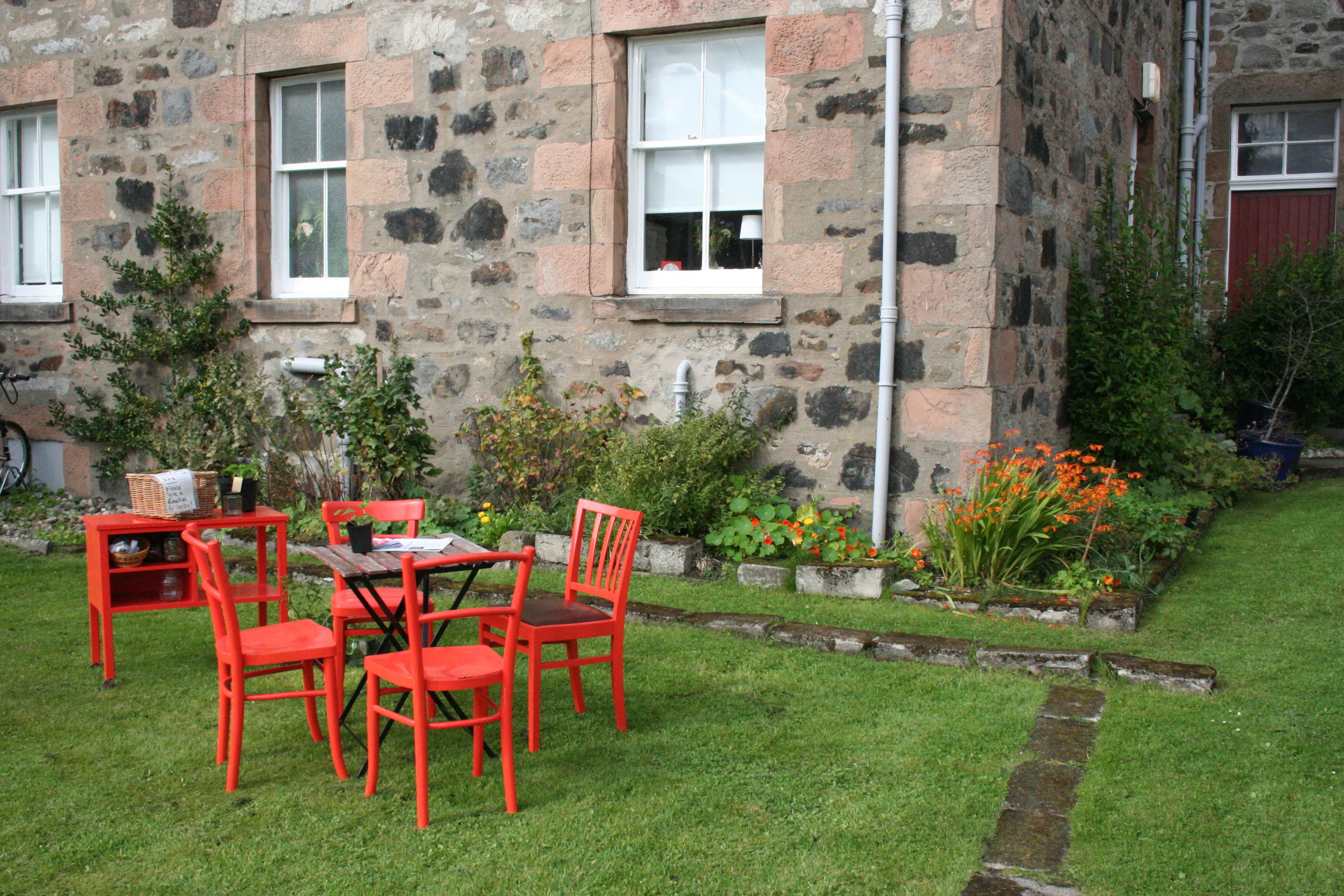 On Monday 7th September the Brander Building garden became home to Deveron Arts' Open Garden Cafe. This will hopefully be the beginning of a regular food/herb swap cafe.
