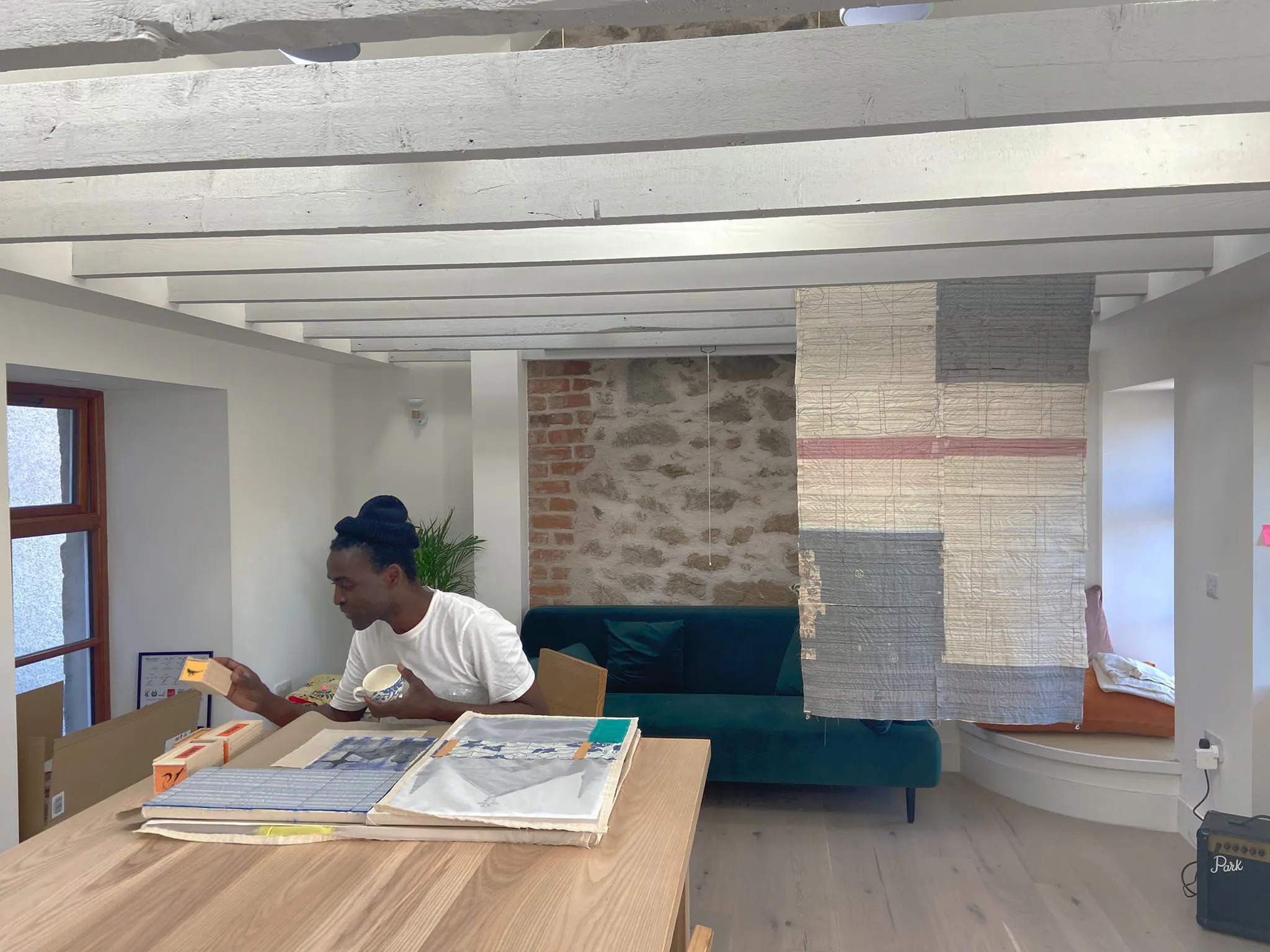 The Artist House features a private, bright, flexible, open-plan studio/ living space that is ideal for reading, writing, editing and researching, project development, digital practice, practicing, resting, testing new approaches to making work and/or reflecting on existing work or learning. Small-scale painting, printing, sculpture and textile-based work is also possible.