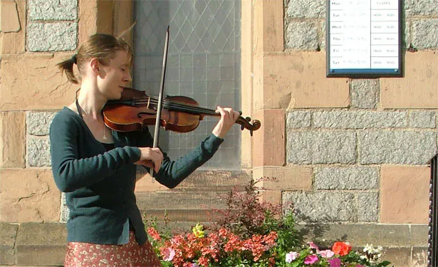 Emily White is a violinist and trombonist based in Gloucestershire who travels and performs all over the world. She stayed with us for four months in 2008. During her stay she met local poet Brian. Brian and Emily got married in March 2012.