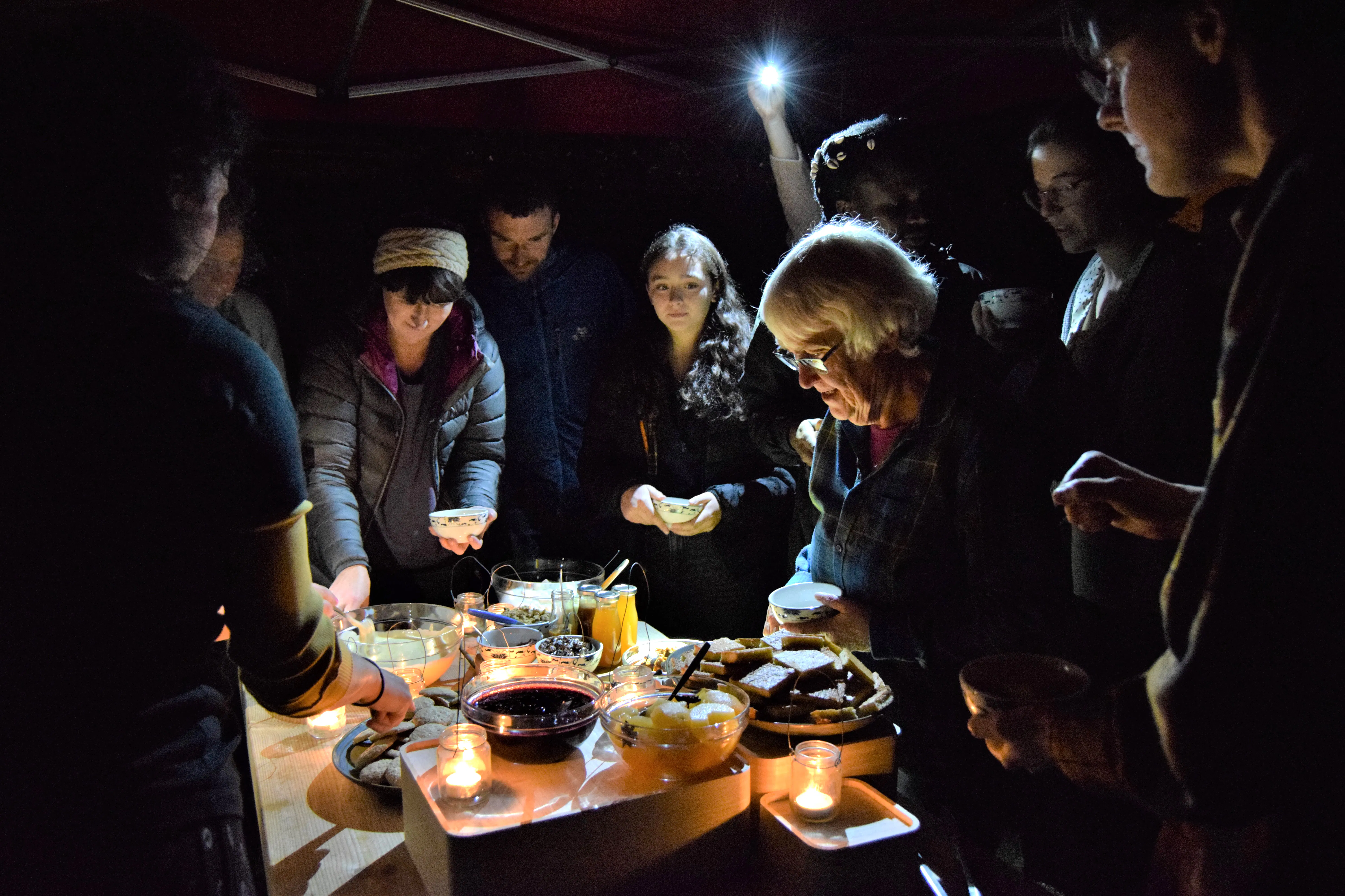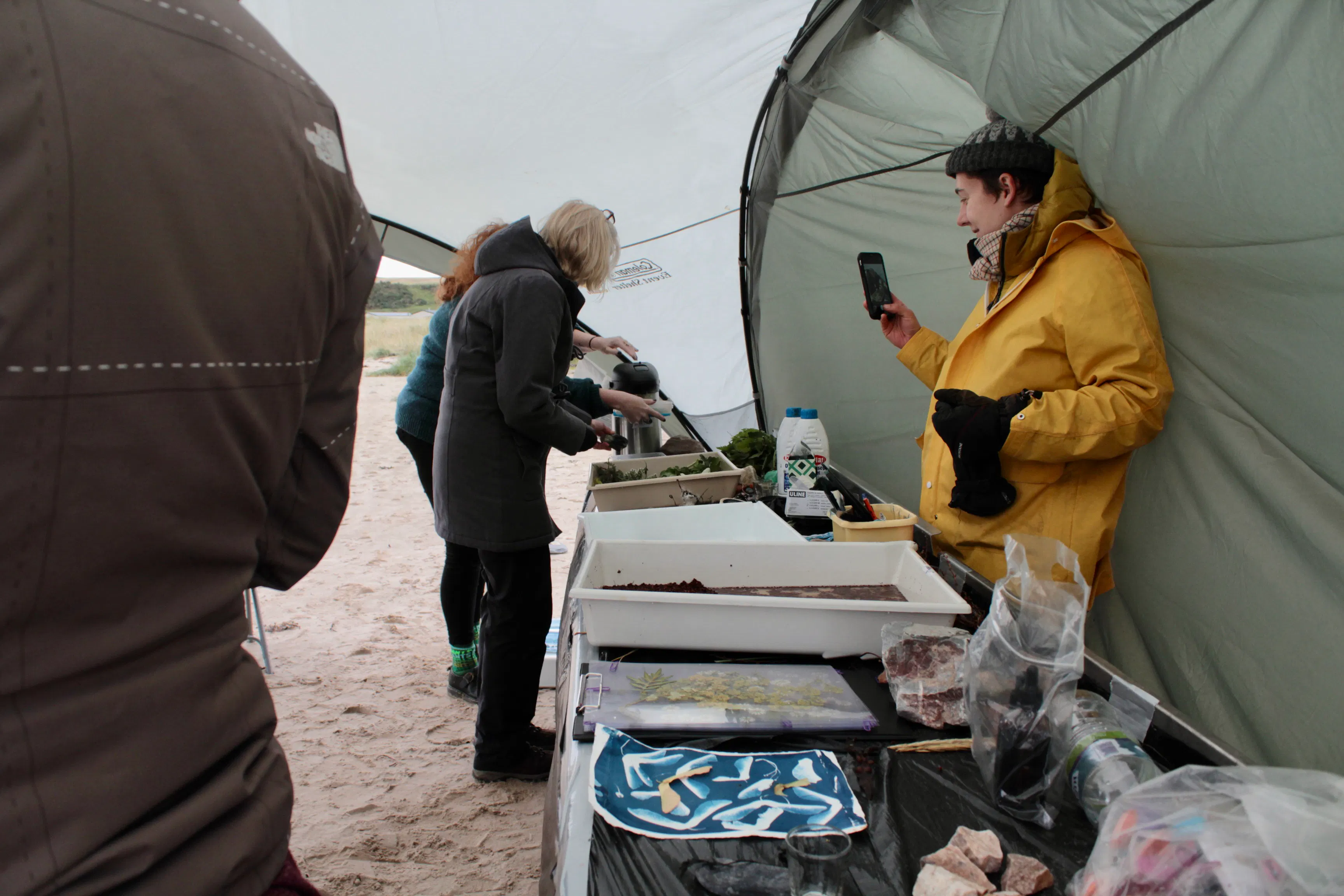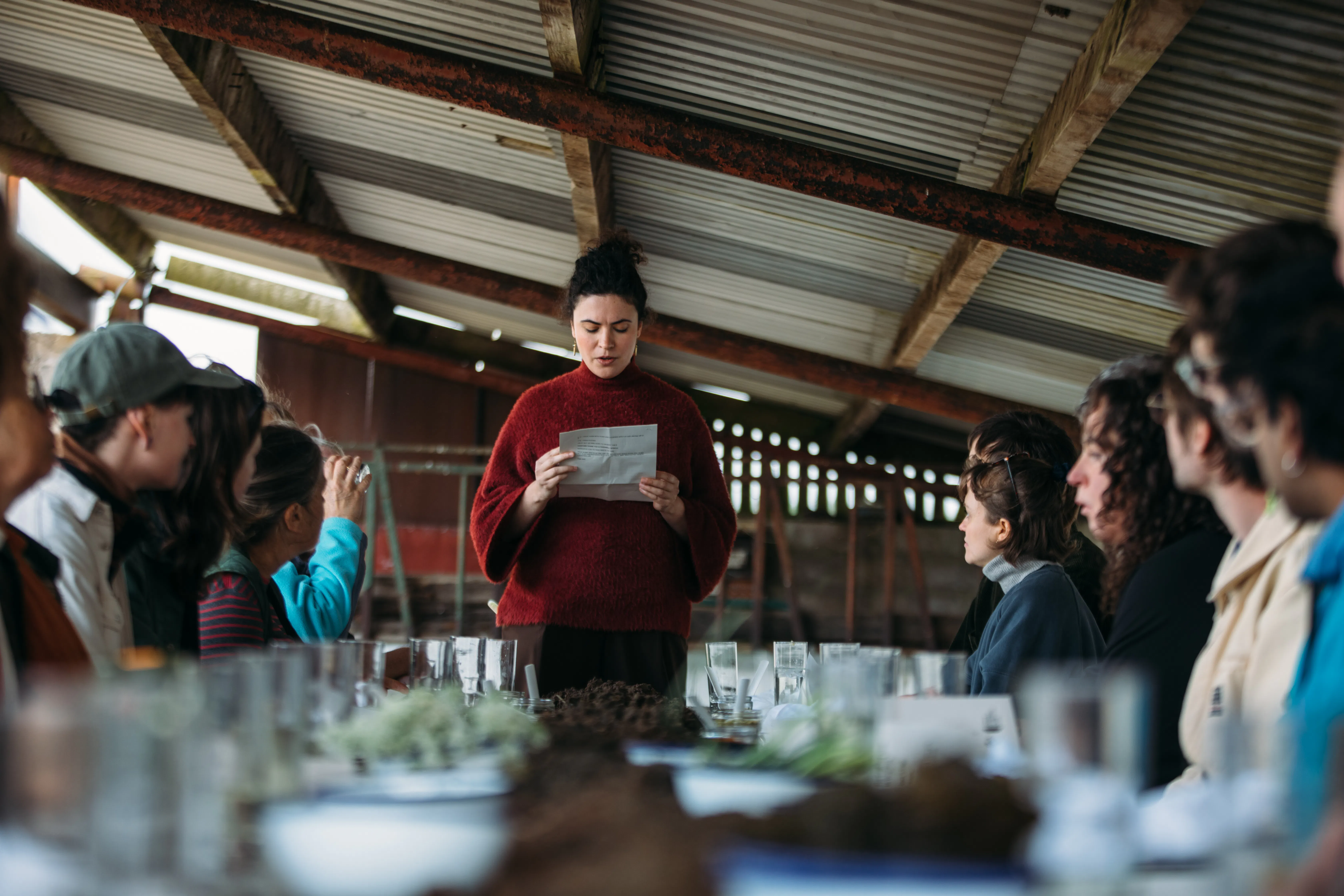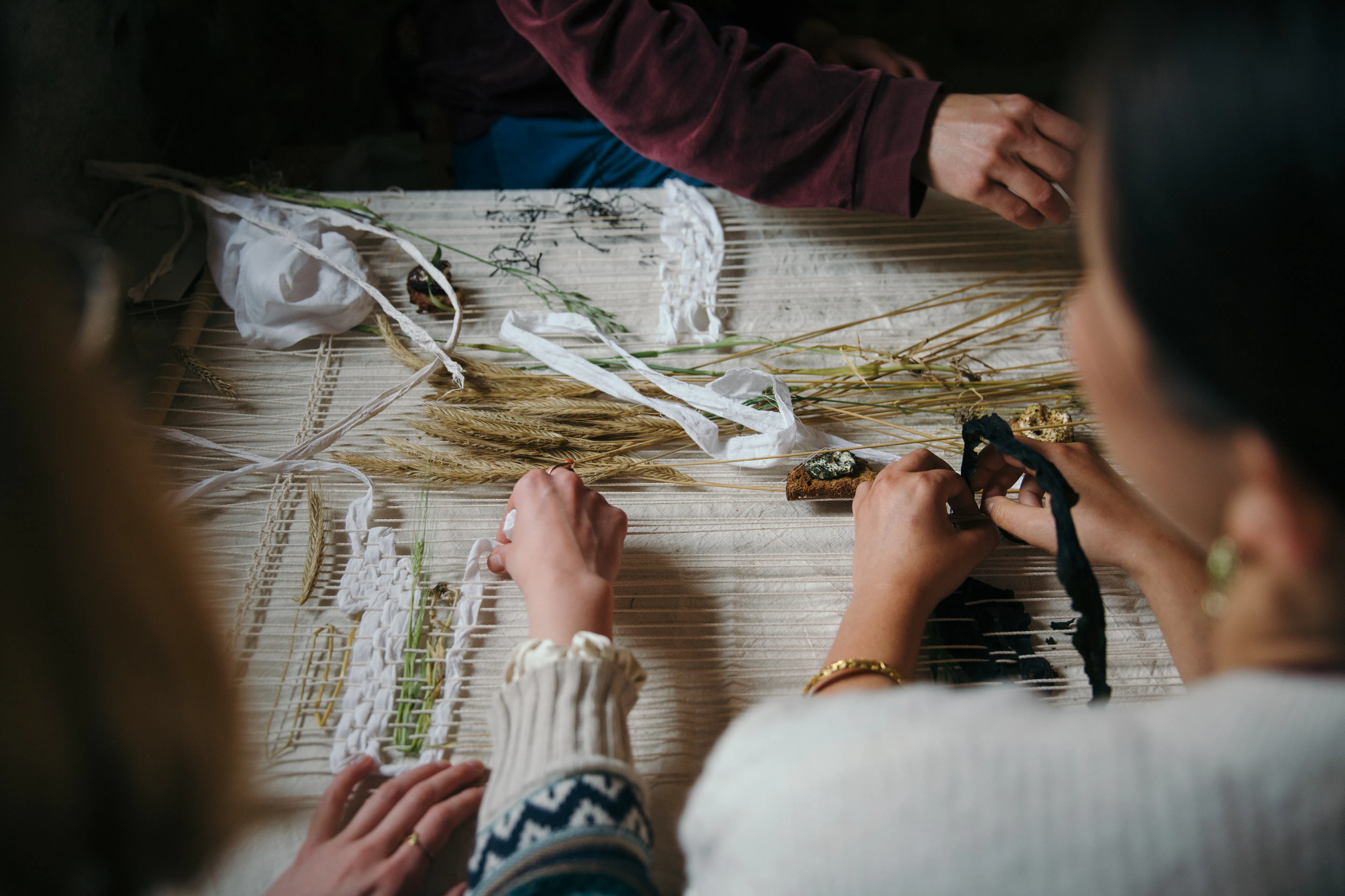 Through the simple act of foraging, The Gathering Table considered the wild produce and natural materials available in and around Huntly, slowly drawing together hand-gathered and hand-made produce: co-creating meals, tinctures, textiles and objects that embody forward-thinking ancestral and indigenous wisdom. In parallel, the project also allowed Kawther and Deveron Projects to think critically about how hospitality sits within an artistic programme, exploring the role of guest and host when working internationally and in a socially engaged way. By reflecting on the interconnected value of meals, Kawther took into account the whole spectrum of relations within the social context of eating together; moving away from the independent expression of the private artist, towards creative spaces that are produced through collective experience. The project culminated in a series of three meals in three different locations - The Gathering Table in Three Acts.