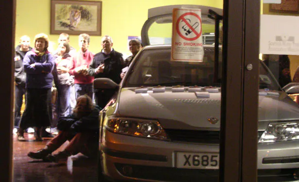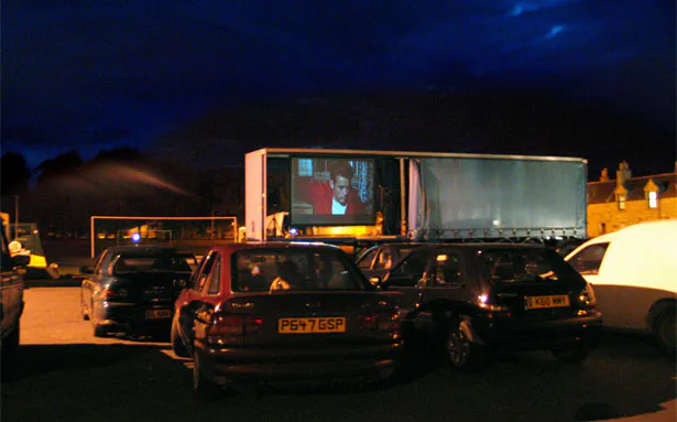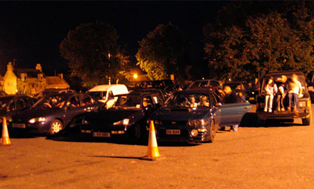 Jelka’s process consisted of talking to everyone concerned (the cruisers, the neighbours, the local driving teacher who had been a cruiser himself once, social workers, police, etc.). She undertook structured interviews and informal conversations that were published in the Huntly Express, along with pictures she had taken of the cars and of gatherings at the Market Muir Car Park. Before deciding to focus on work with the tubers, she asked teenagers what they missed in Huntly and quite a few mentioned a cinema, an acknowledgement of sorts that the cruisers also drove around out of boredom. In response to these interviews, Jelka set up a drive-in cinema in the car park where the tubers usually line up with their cars to chat from window to window.