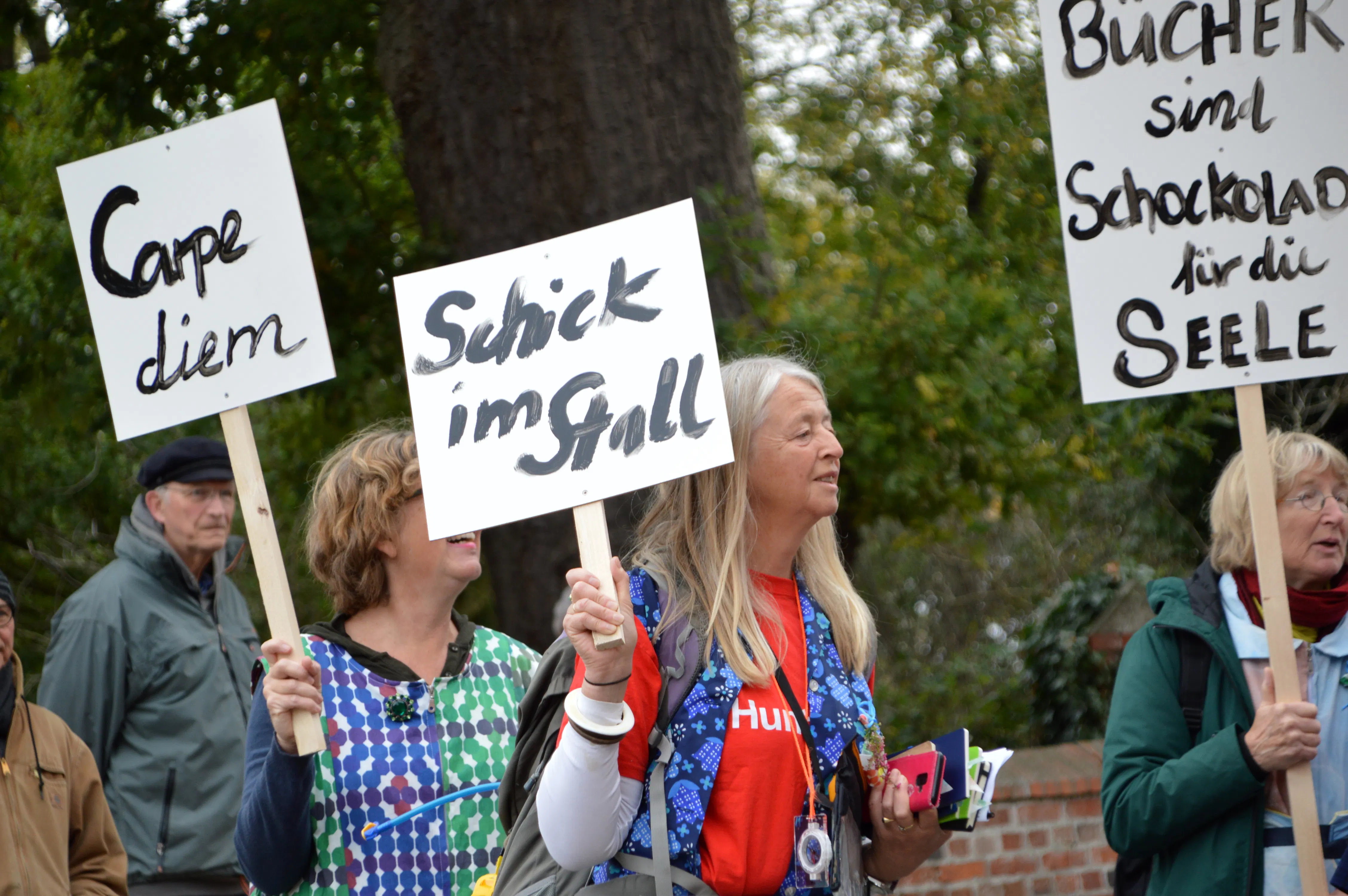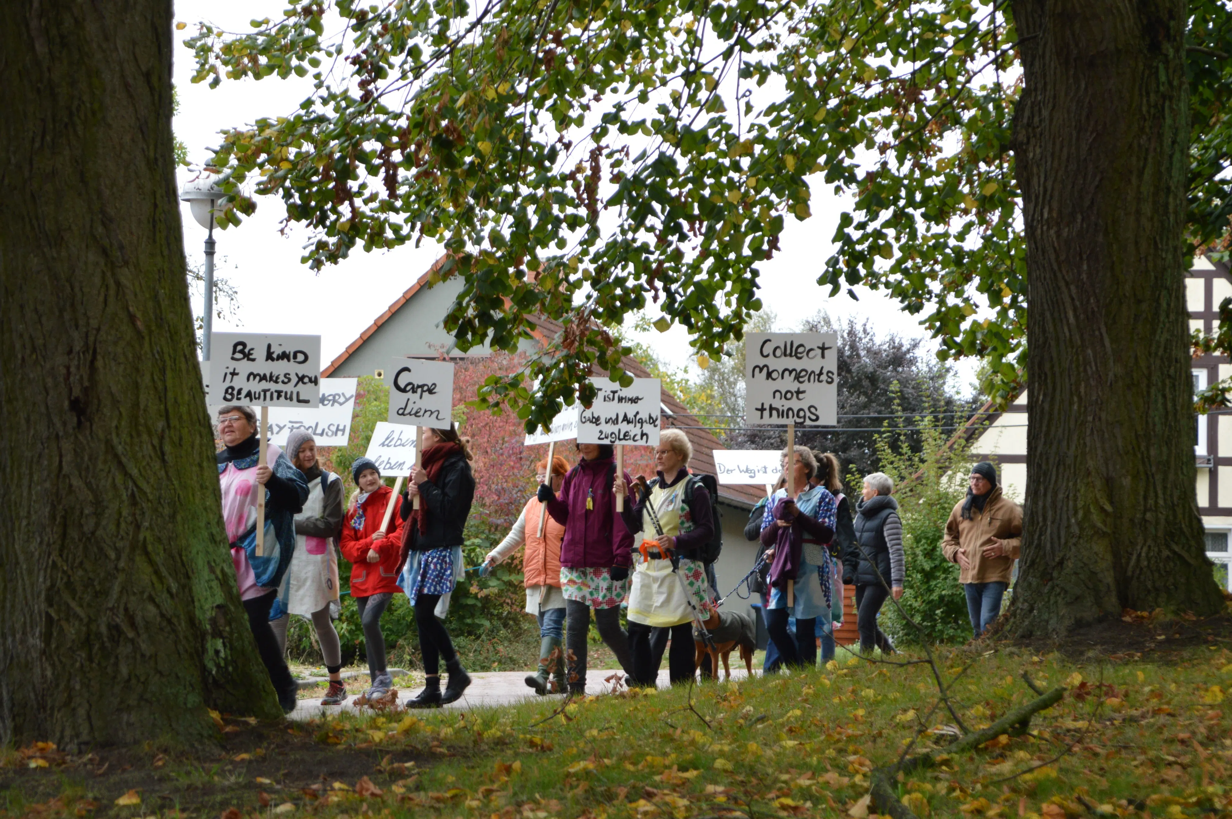 As part of this process with the two communities, Strodehne and Huntly, multiple events and interventions to connect individuals and groups from both locations were planned. In Germany, a 90k pilgrimage was co-curated by Claudia Zeiske - walking with Strodehne women from their village to the Fashion Museum in Meyenburg over 3 days. The project hoped to make connections through design, walking, dancing and other creative forms of celebration to develop new and sustainable patterns of collaboration. The question of what are the personal, communal and artistic needs to form sustainable partnerships remains in the open for people to answer in different ways.