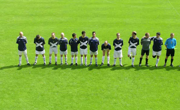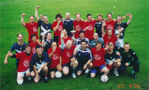 After holding competitions in Lisbon, Helsinki and Belgrade, ARTCUP came to Huntly, Scotland. The two teams, made up of professional footballers and artists, selected to play were Scotland and Denmark - both of whom failed to qualify for the World Cup. This a priori acknowledgment of failure allowed the teams to focus more on the game itself and how it is played - with the element of direct competition, to some extent, removed. It should be added however, that football's inherent competitive spirit was still apparent as a foundational mechanism of the game.