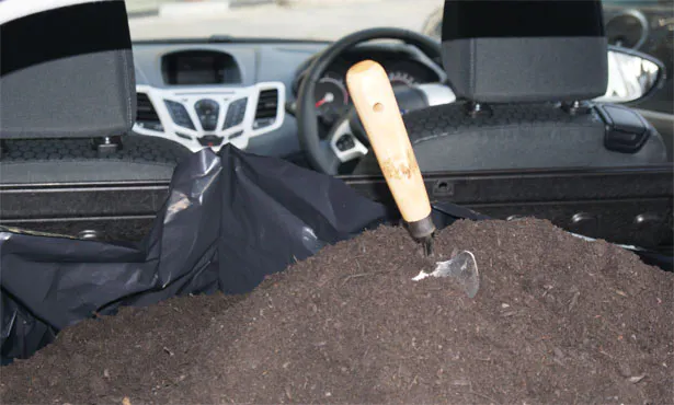 As part of her final event in Huntly, ‘compost action’, Stefanie filled the boot compartments of brand new cars (which had a significant carbon emission and cash value attached), with several tonnes of compost. She then invited people to come to the Farmer’s Market in the town square to take the compost away in reusable containers.