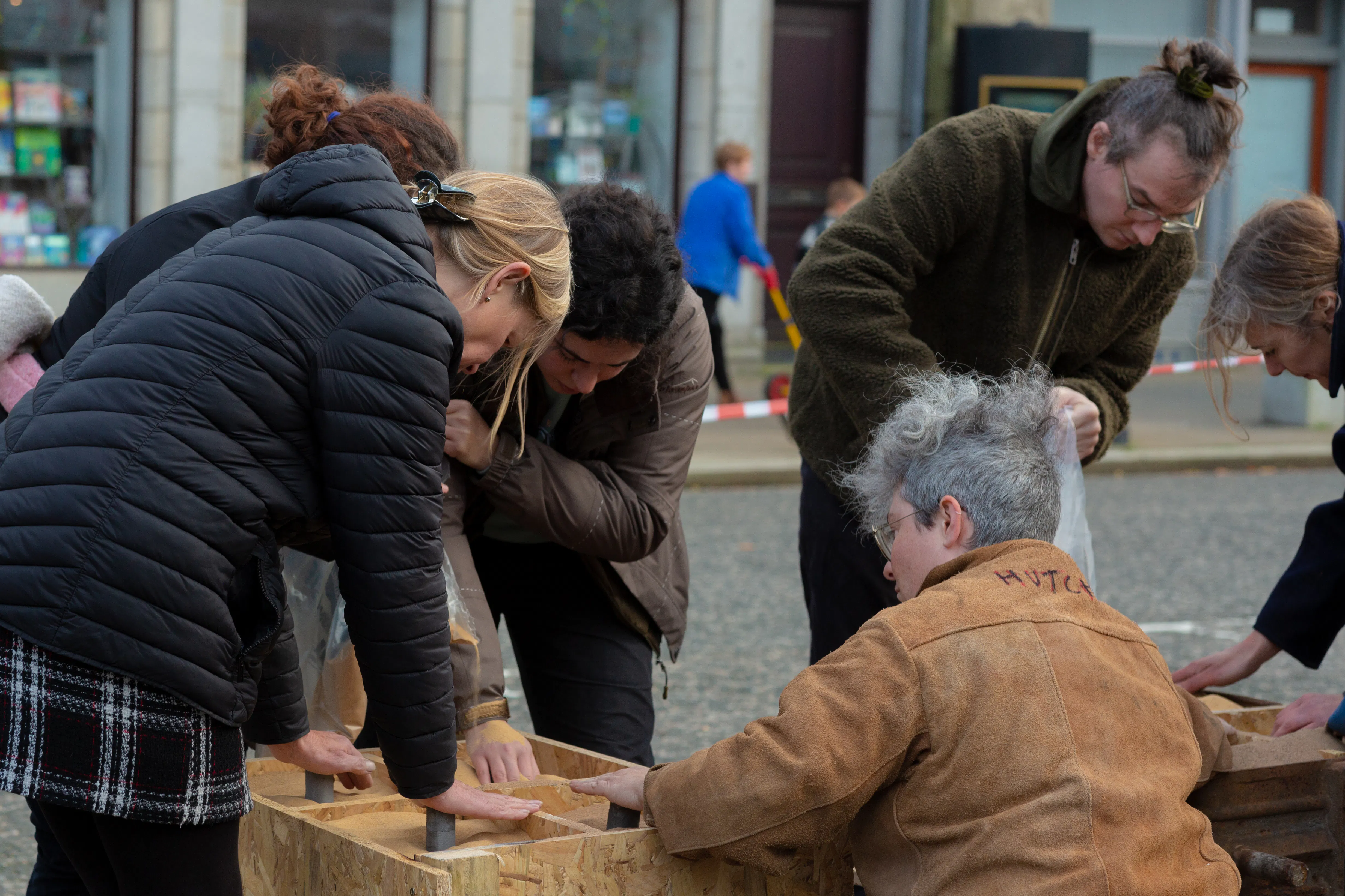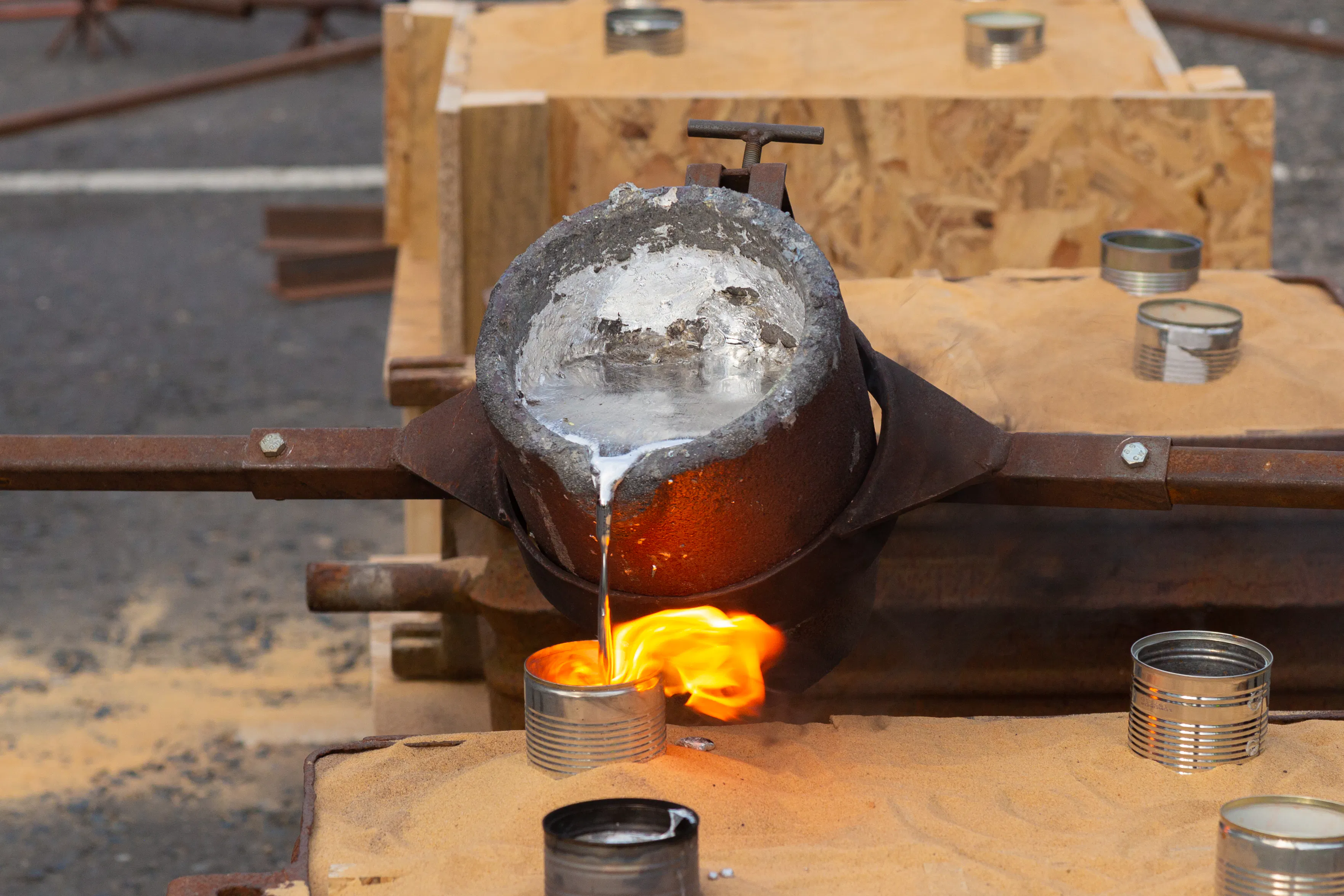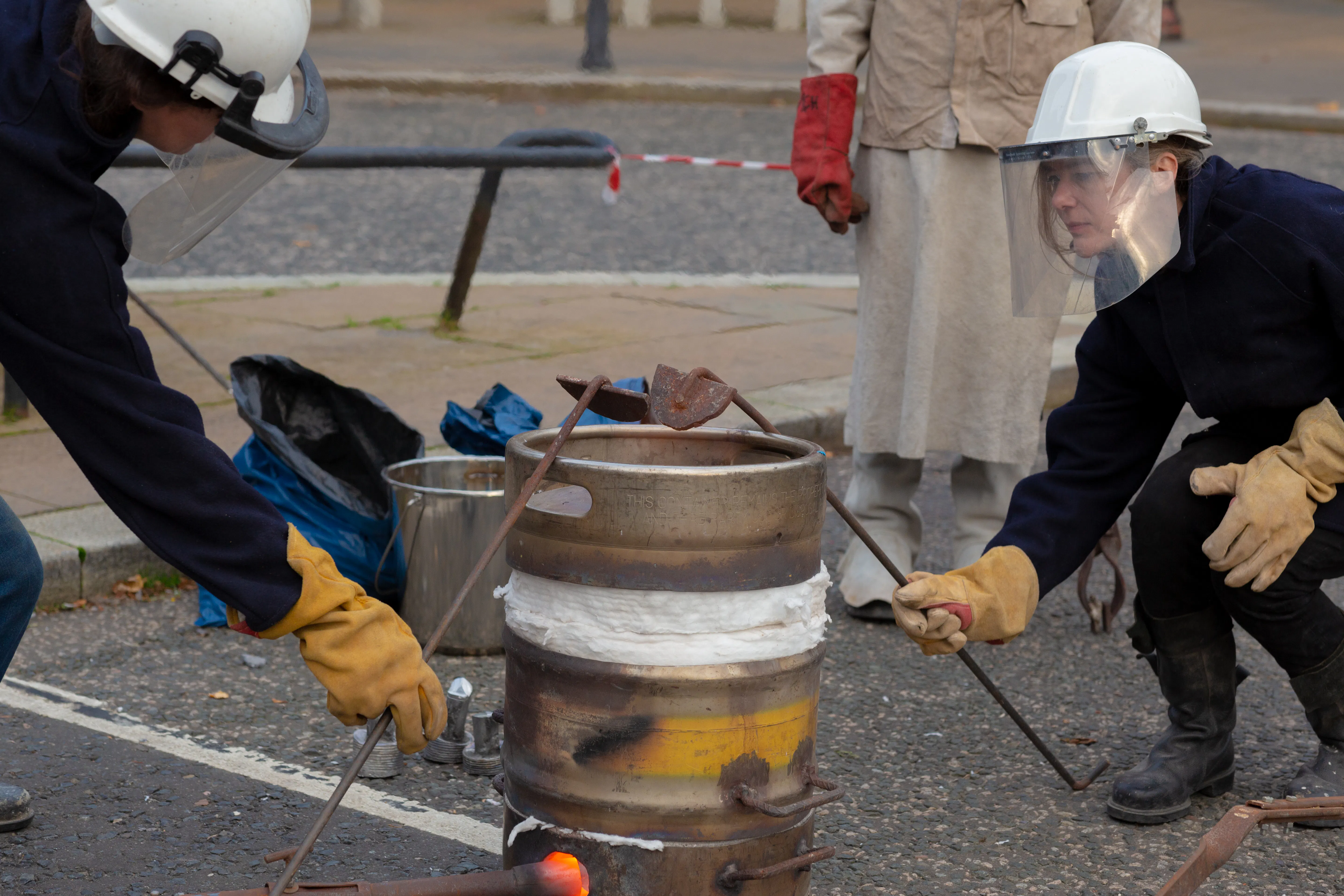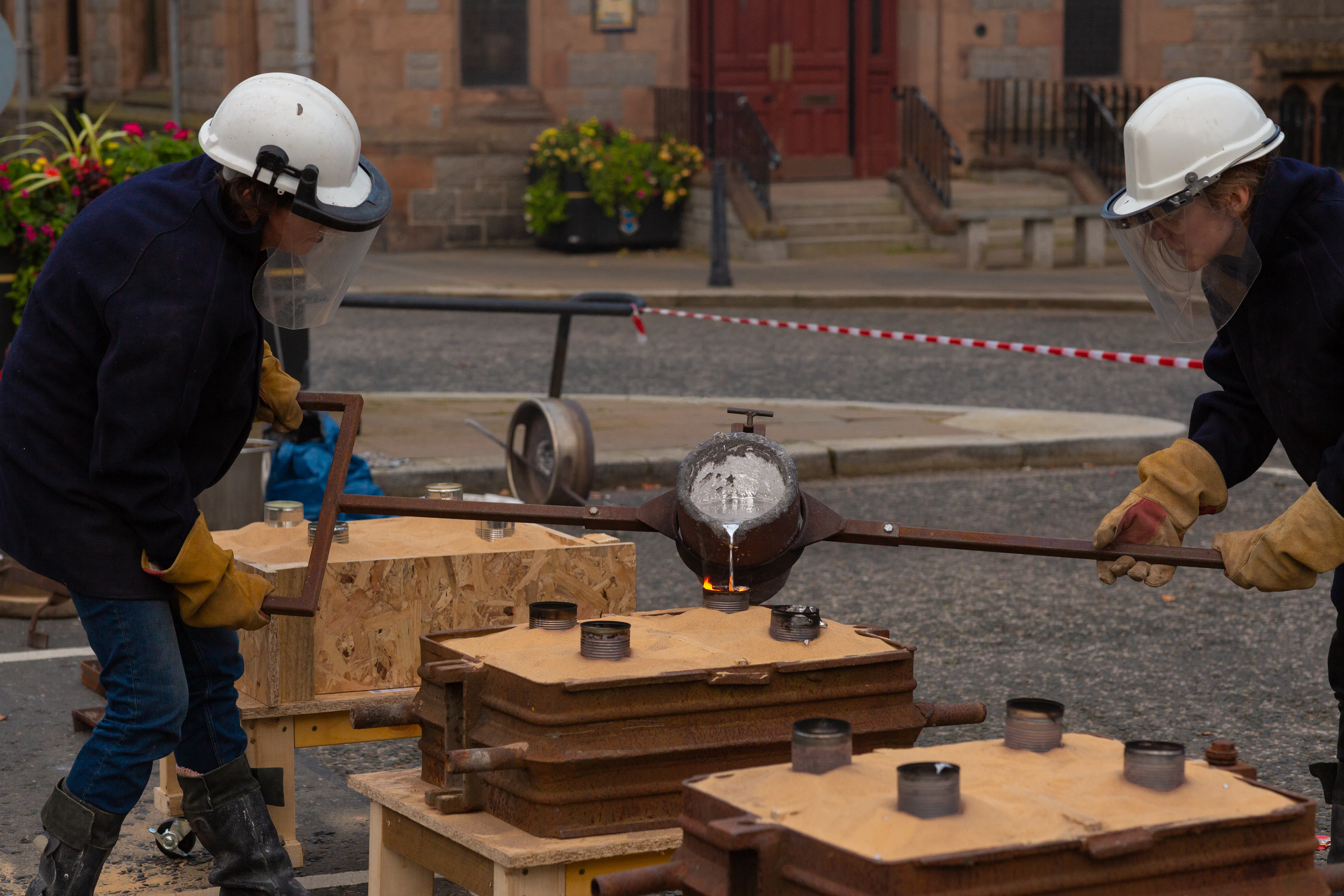 Throughout the course of the project, In the Shadow of the Hand worked with recycled aluminium - beginning life as a series of TV food trays distributed to each member of the film club, the objects were remelted, culminating in the creation of an aluminium projection screen which was used in the final events to present the new moving image work created collectively by the artists and the community. Infinitely recyclable and adaptable, aluminium lends itself to a sculptural production project due to its physical properties, but it is also representative of a culture of disposable production. Following the journey of this material from utensil to cinema screen and public sculpture, allowed us to explore ideas of transition in relation to material and immaterial encounters. It also presented the opportunity to consider what might happen to the screen in the future. Could it be re-melted and folded into new conversations?
